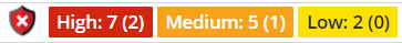 Security Vulnerability views feature enhanced severity details for components analyzed with Mend Prioritize. This is displayed in a number provided in parentheses (x) next to the existing severity provided for a given vulnerability severity class (e.g., High, Medium, Low) like in the following screenshot: