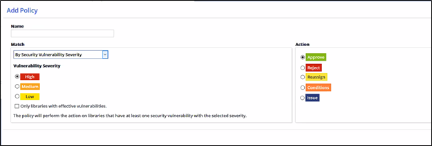 Adding a Policy by Security Vulnerability Severity AND Vulnerability Effectiveness.