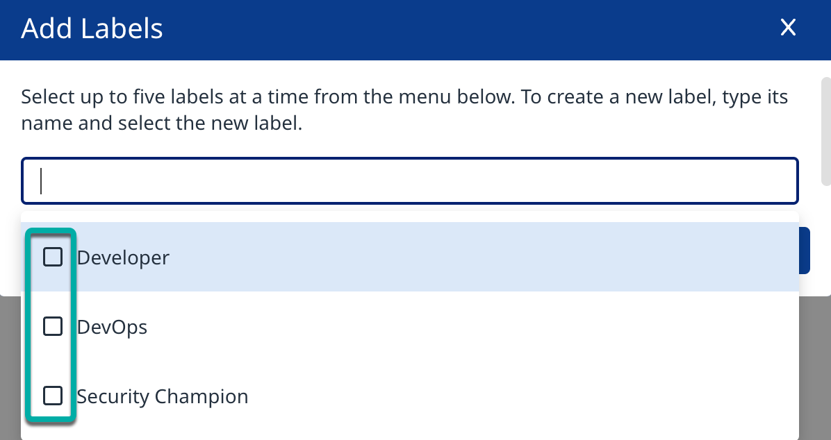 Note: You can only select up to five Labels at a time.