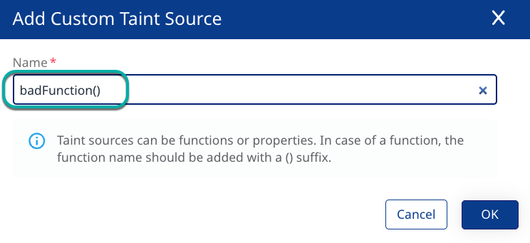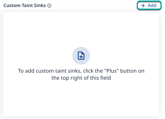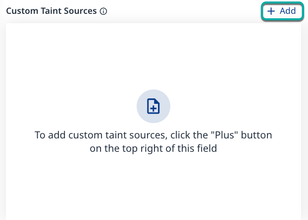 Click + Add in the top right corner of the Custom Taint Sources widget. The Add Custom Taint Source dialog box will appear.