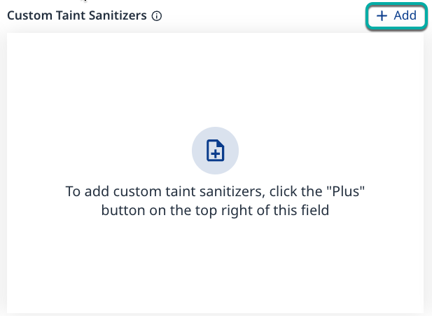 Click + Add in the top right of the Custom Taint Sanitizers widget. The Add Custom Taint Sanitizer dialog box will appear.