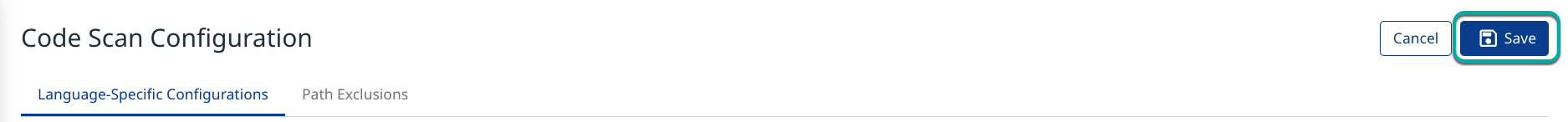 Click Save in the top right corner of the Projects Code Scan Configuration page after completing the desired Project Code Scan Configuration changes.