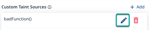 Click the pencil icon next to the Custom Taint Source you wish to edit. The Edit Custom Taint Source dialog box will appear.
