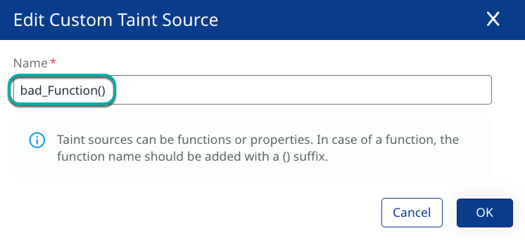 Enter the name of the Custom Taint Source.