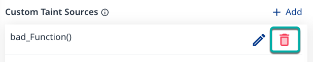 The Custom Taint Sources section provides the ability to add Taint Sources beyond the predefined ones.