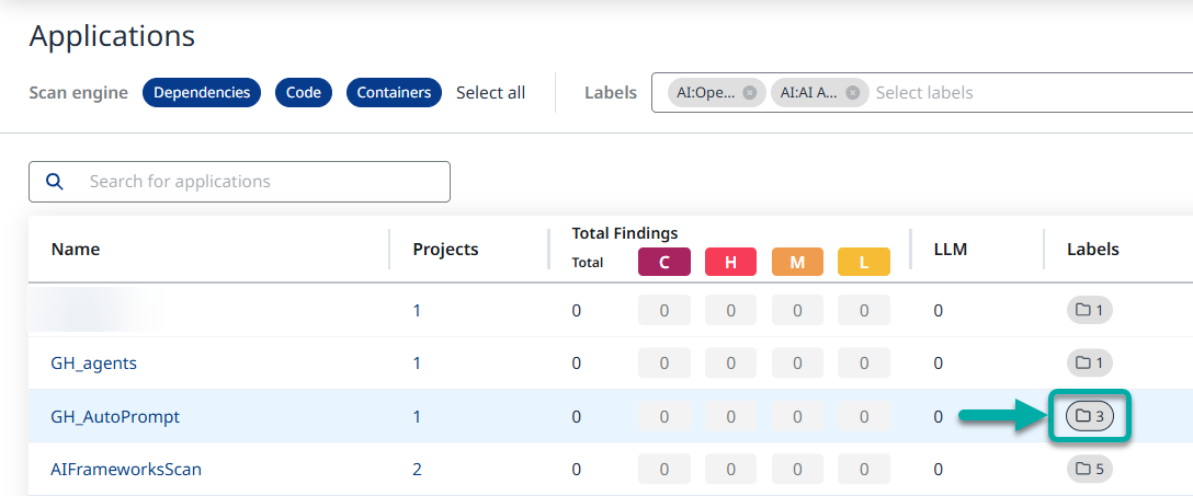 At this stage, the AppSec Platform will filter the Applications in the dashboard based on the selected labels.