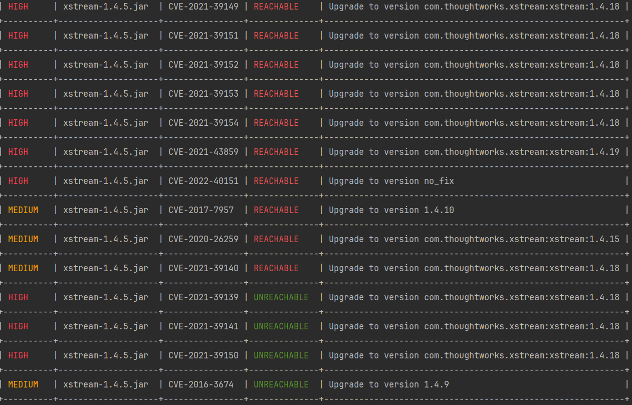 If results are exported to .json format, the CLI will export the information regarding the findings, including the reachability information for each finding, to a .json file.