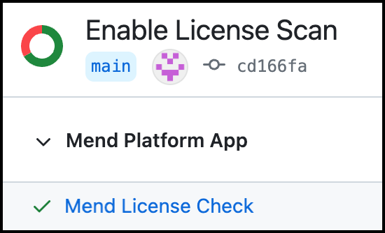 The following commit status indicators are available as feedback on the head commits for the Mend License Check: