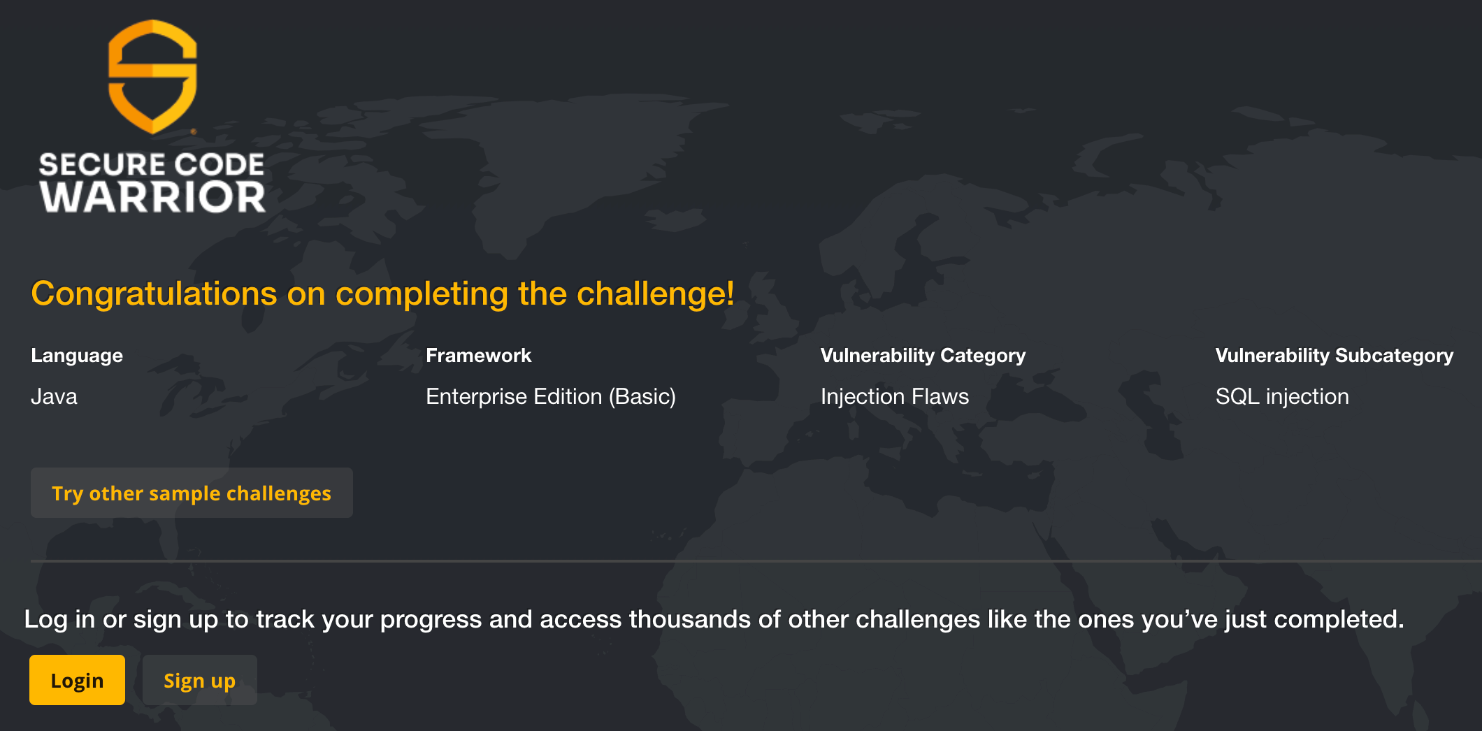 If you have a Secure Code Warrior account, log in so your progress through the learning challenges can be tracked.