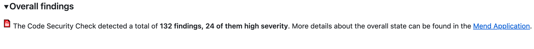 The Overall findings section provides the total count of findings as well as the direct link to the scan’s Details page within the Mend SAST application: