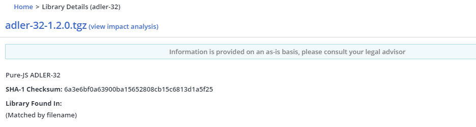 In situations where a library is matched by file name, we recommend relying on the information found in the "Impact Analysis" page to determine how this library is included in your project. The “Impact Analysis” page can be reached by clicking “View Impact Analysis” right next to the name of the Library. This will bring you to the “Impact Analysis” page for your library where you can view the dependency path for this library.