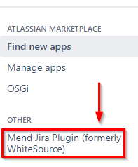 Find and click on the Mend plugin from the left sidebar: