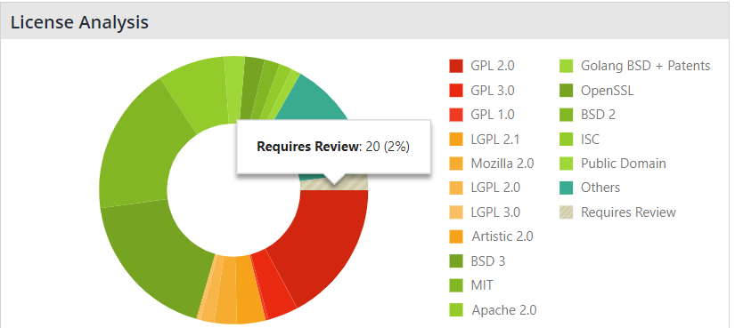 In the project page, you will notice a ‘License Analysis’ pie chart, depicting the license type distribution in the project.