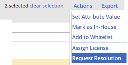 Once selected, click the ‘Actions’ button on the far right and select ‘Request Resolution’ from the drop-down menu.