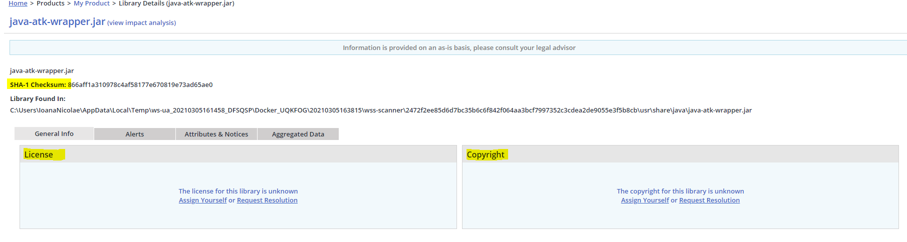 Libraries matched by "Exact Match" are missing License or Copyright Information