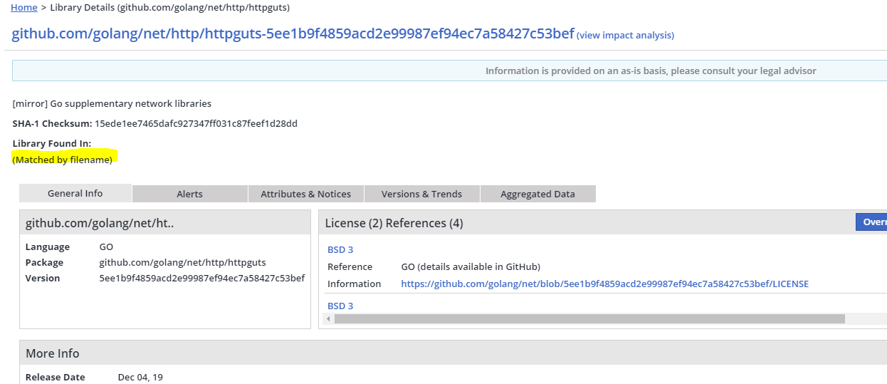 If a package manager is used in the scan, there's a chance a certain package (which is a dependency for the project) will be listed by the package manager as a dependency, and Mend will use its coordinates, to retrieve its SHA1 and present it in the project inventory. This does not indicate however that there's a permanent location on the filesystem from which it was picked up. As a result, the library will have an ‘exact match’ type but the location will be empty in the application UI.