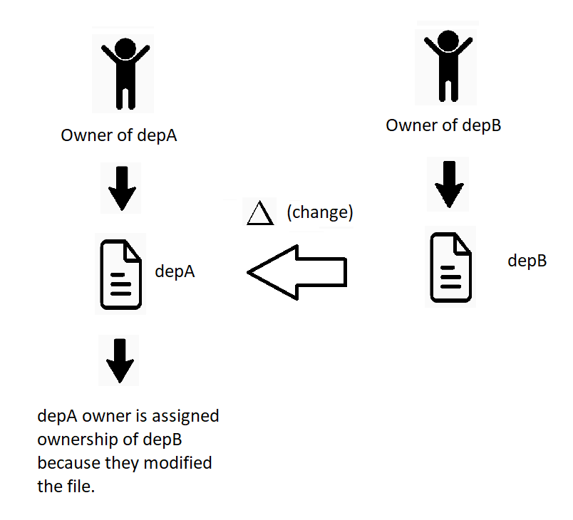 One might think that the transitive dependency depB should still be attributed to the original creator of the library; however, in this case Mend does not attribute that file directly to the creator because it has been modified, and Mend identifies files based on their SHA-1. If the file has been edited in any way, then the SHA-1 changes, and therefore the owner of the file does as well.