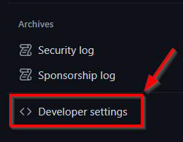 On your Settings page, scroll down the left-side table of contents and select Developer settings: