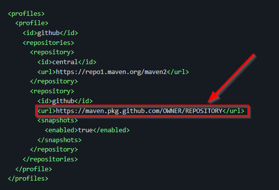 OWNER- ReplaceOWNERwith the name of the GitHub user or organization account that owns the repository where your Maven GitHub Packages are hostedREPOSITORY- ReplaceREPOSITORYwith the GitHub Repository where your Maven GitHub Packages are hosted