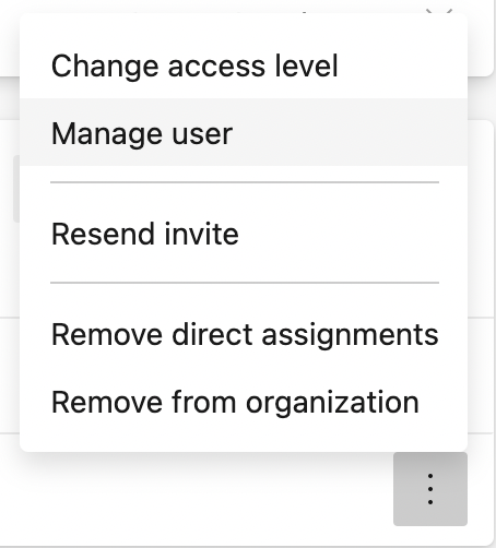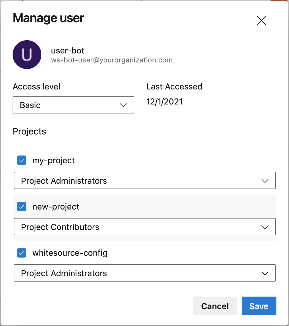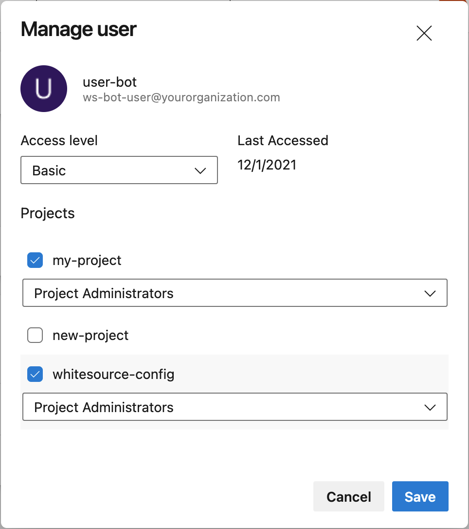 This is especially important to remember when a new project is created in the organization. By default, bot-user will not get access to the new projects and you have to do it manually in the Organization Settings → Users. Click on three dots on the bot-user and go to “Manage user”