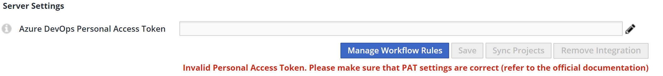 You might see this error message in the Mend application when saving the PAT. It most likely indicates that the PAT’s organization was not set to the All accessible organizations option.