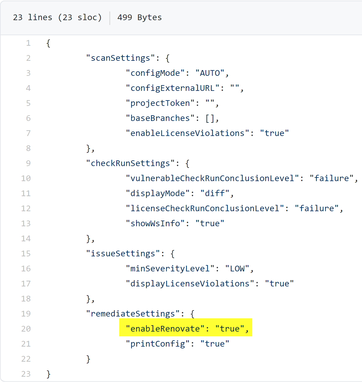 repo-config.json -- have Renovate settings enabled under remediateSettings