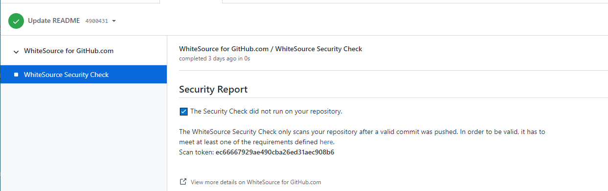 If your pull request meets one of the above criteria, you will see the following check run on the pull request’s page. Click ‘Details’ to review the Security Report.