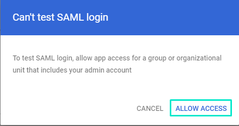 Click ‘TEST SAML LOGIN’
