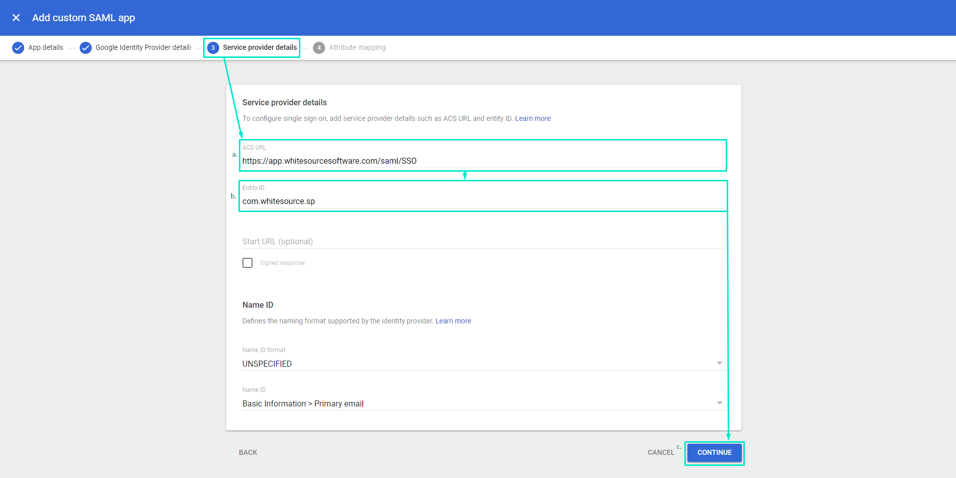 https://<your_mend_environment_here>.mend.io/saml/SSOFill in Entity ID with this: com.whitesource.sp