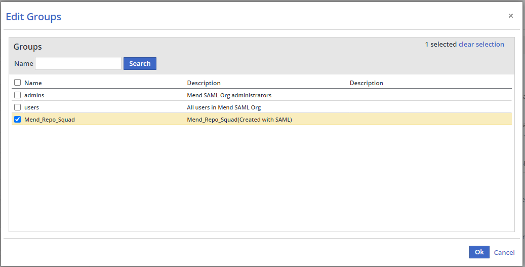 For single organization SAML set ups, Group mapping can be done via SAML Attribute. once a user has signed into Mend with their SSO, if the group is not present, it will be created and the user will automatically be assigned to the group. When initially created, groups have no roles assigned to them. Roles can then be added to these created groups.