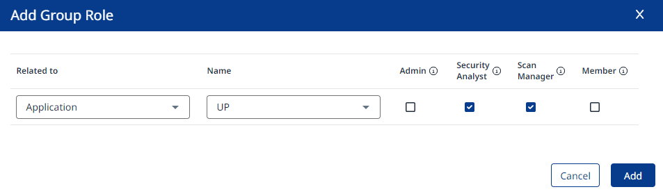 On the Add Group Role Dialog, select the Scope level and the desired Roles for the Group then click Add.